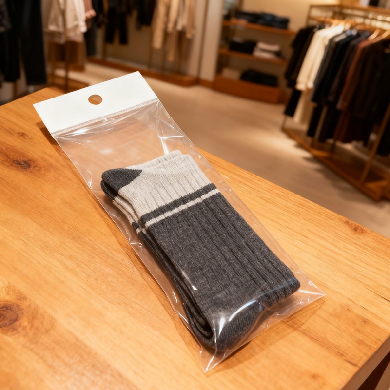 Penampilan Telus: Bahan BOPP kami mempunyai ketelusan yang tinggi, yang boleh memaparkan warna, tekstur dan reka bentuk pakaian tanpa ubah bentuk. Permukaan kecerahan tinggi meningkatkan nilai deria pakaian, menjadikannya menonjol dalam persekitaran runcit atau penghantaran e-dagang. Permukaan Tidak Bercetak: permukaan bukan bercetak proprietari menghalang dakwat daripada dipindahkan daripada reka bentuk bercetak pada label, tanda dagangan atau pakaian. Menghilangkan risiko kotoran pada fabrik halus, pakaian putih atau pakaian mewah, memastikan barang tiba di bilik pameran dalam keadaan terbaiknya. Ketahanan: Berbanding dengan alternatif PE dan PP standard, bahan BOPP mempunyai kekuatan tegangan yang sangat baik, rintangan tusukan dan rintangan koyakan. Ia boleh melindungi pakaian daripada haus, pengendalian kerosakan, dan faktor persekitaran semasa pengangkutan dan penyimpanan. Kelembapan dan Rintangan Debu: Penghalang kalis air melindungi pakaian daripada kelembapan, habuk dan bahan pencemar, mengekalkan integriti dan kebersihan fabrik. Ini amat berkesan untuk pengangkutan atau penyimpanan jarak jauh di bawah keadaan iklim yang berbeza. Reka Bentuk Boleh Disesuaikan: Sesuaikan beg pembungkusan mengikut keperluan jenama anda, dengan pilihan saiz, ketebalan dan pengedap boleh laras (seperti pengedap pelekat sendiri, pengedap haba). Pilihan untuk gulung atau beg individu boleh menampung kedua-dua proses pembungkusan automatik dan manual. Anda juga boleh menambah kepala kad untuk paparan yang mudah.