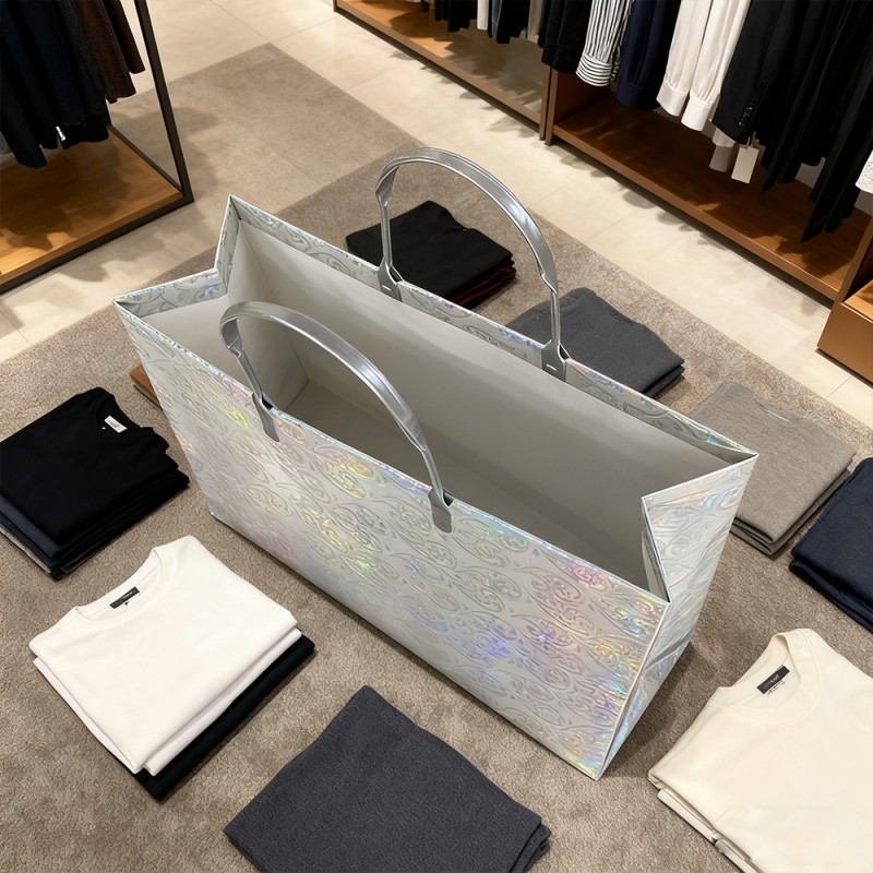 Permukaan Berkilauan: Filem bergemerlapan dibenamkan dengan zarah bergemerlapan premium yang halus yang menangkap dan memantulkan cahaya dari setiap sudut, menghasilkan kilauan berbilang dimensi yang menawan. Ini serta-merta menarik perhatian dan menjana rasa teruja dan perayaan. Tekstur Mewah: Tidak seperti kilauan mengelupas, filem berlamina kami mengekalkan kilauannya secara kekal di bawah lapisan pelindung yang licin. Ini memastikan pengalaman pengguna yang bersih dan kemas sambil memberikan sensasi sentuhan yang selesa. Reka Bentuk Boleh Digunakan Semula: Gabungan teras kertas yang kukuh dan permukaan berlamina yang keras menjadikan beg ini dibina untuk bertahan lama. Keupayaannya untuk mengekalkan kilauannya dari semasa ke semasa menggalakkan penggunaan berulang, menjadikan pelanggan anda menjadi duta jenama berjalan lama selepas pembelian awal. Percetakan Hebat: Pasukan reka bentuk kami boleh mereka bentuk corak mengikut keperluan anda dan mempamerkannya pada produk dengan peralatan canggih dan teknologi canggih kami. Logo dan reka bentuk anda boleh digunakan dengan warna yang jelas dan terang, menghasilkan kontras yang cantik dengan latar belakang yang berkilauan untuk mencapai kesedaran jenama yang maksimum. Penyesuaian diperibadikan: Pelanggan boleh menukar warna, menggantikan pemegang, menambah corak tertentu dan menyesuaikan saiz mengikut keperluan mereka. Menyediakan fleksibiliti yang luar biasa untuk memadankan warna jenama khusus anda dan keperluan fungsian untuk acara yang berbeza.